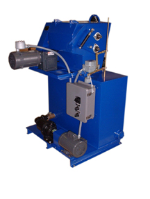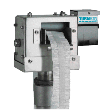 MopClear is an oil skimming system designed to remove floating oil from machine coolants, wash water or any small area where oil accumulates. A polypropylene mop drops own from the unit, across the oil contaminated surface and then is drawn back through the rollers which squeeze the oil from the mop. The waste oil then drains through a standard 1 1/2" male NPT fitting to a drum or tank.